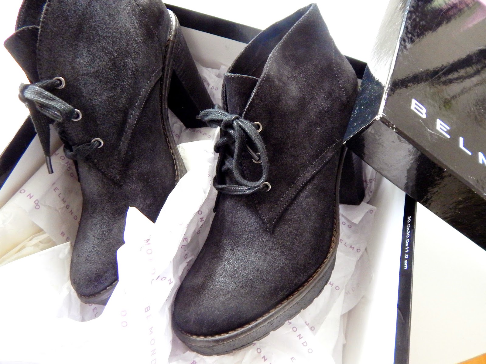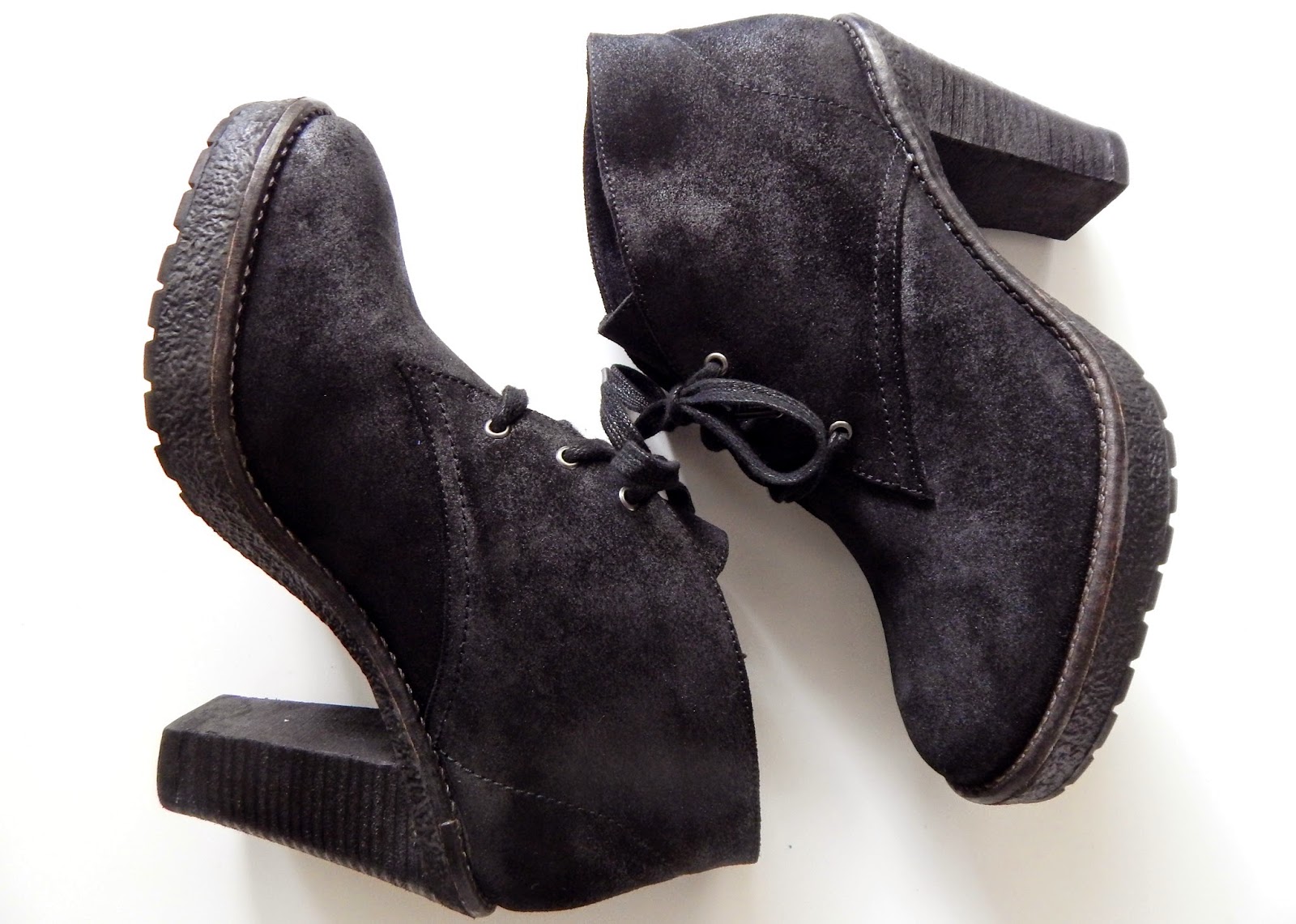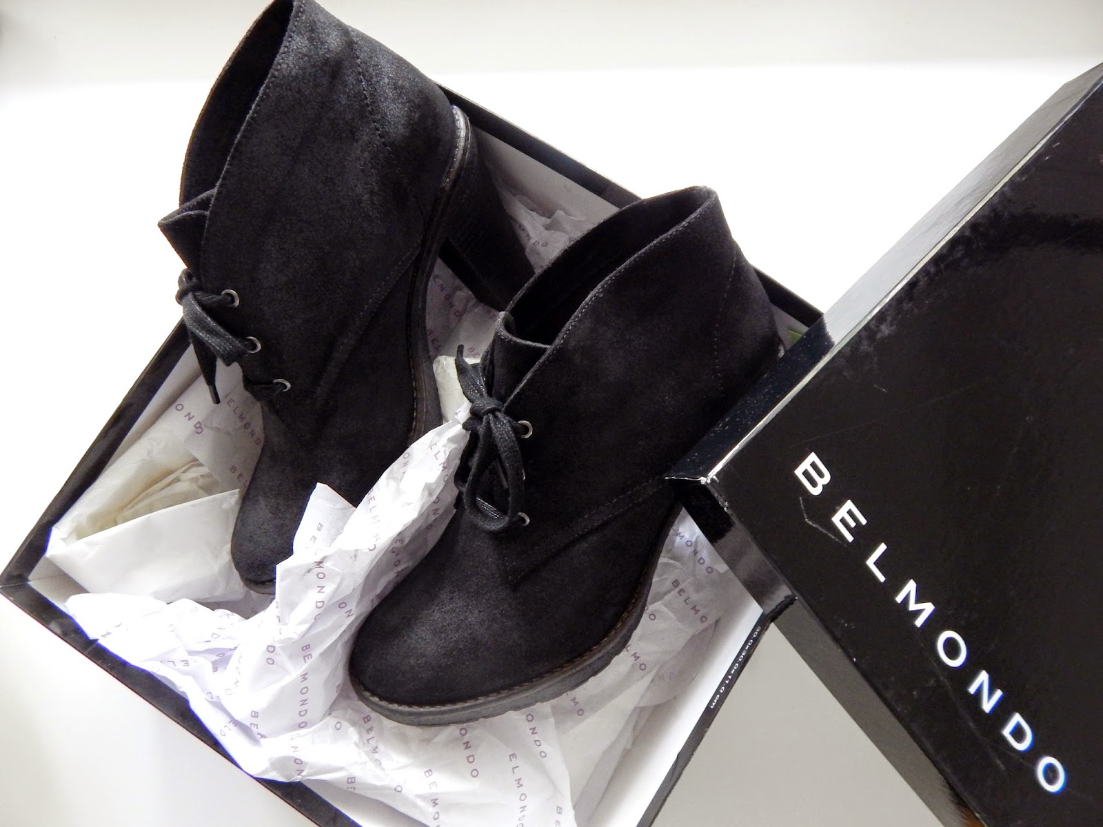 Nachdem ich vor knapp drei Wochen Geburtstag hatte, hatte ich überlegt, ob ich einen Post darüber schreiben soll, habe mich aber dagegen entschieden. Mein liebstes Stück muss ich euch aber trotzdem zeigen! Ich habe mich riesig gefreut, dass diese wunderschönen Wildleder Booties von Belmondo bei mir eingezogen sind. Die schwarzen Schmuckstücke sehen wundervoll am Fuß aus, sind – jetzt, nach dem mehrmaligen Einlaufen – trotz der Höhe super gemütlich. Jaja, die Höhe… Ich bin 1,80m groß. Ohne hohe Schuhe. Oft darf ich mir anhören, warum ich denn noch Schuhe mit Absatz trage, wenn ich doch schon so groß bin. Ganz einfach: ich bin eine der Frauen, die sich in hohen Schuhen wohler fühlen als in flachen. Ich weiß, merkwürdig. Und wahrscheinlich ungesund. Aber wenn ich die Wahl habe zwischen flachen Schuhen und (gemütlichen) Hohen, nehme ich immer Hohe. Deswegen finde ich diese neuen Lieblinge auch so schön. Ich weiß jetzt schon, dass ich sie den ganzen Herbst (und wahrscheinlich auch Winter) nur tragen werde. Durch die Farbe und den Wildlederstoff sind die mit so gut wie allem kombinierbar. Hach, ich liebe sie einfach.