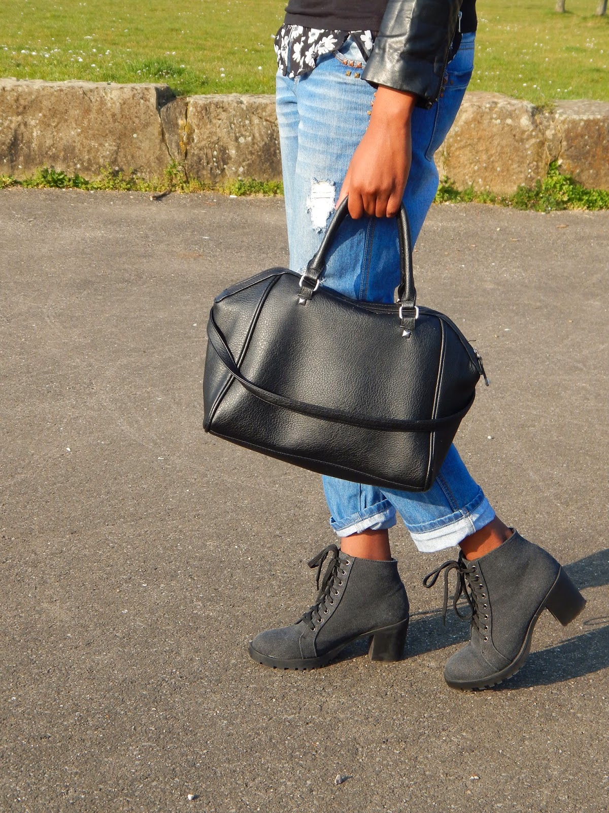 jeans, boots, blouse: primark // bag, t-shirt, jacket: h&m