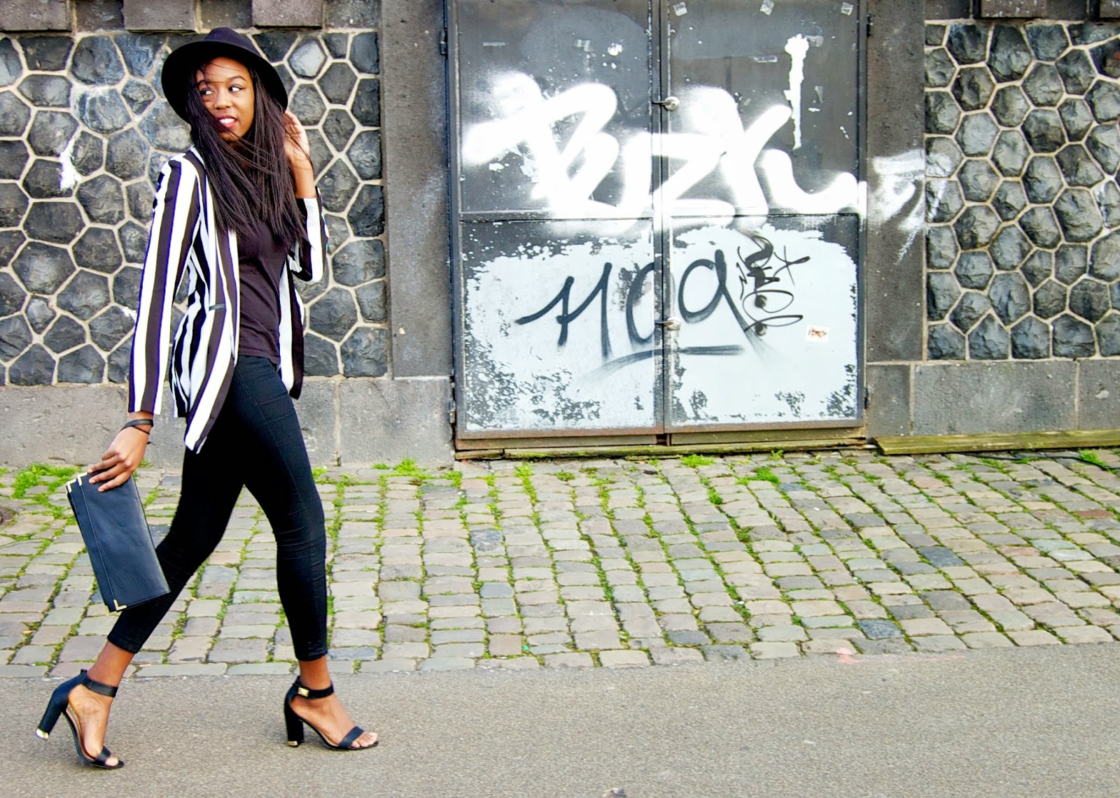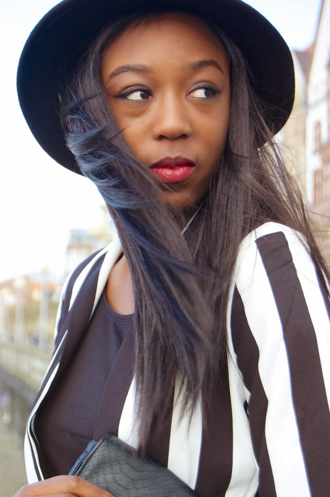 Während der Hausarbeits-Schreibe-Zeit hatte ich nicht wirklich Zeit, und vor allem Lust, mich besonders schick zu machen. Meist ungeschminkt und in einfacher Jeans und Pulli ging es in die Bibliothek, aber jetzt habe ich endlich wieder Gelegenheiten ein bisschen mehr auf mich zu achten. Statt ungesundem Mensa Essen wird jetzt wieder selbst gekocht, es wird wieder Sport getrieben, und Kleidung, die neu bei mir eingetroffen ist, kann endlich ausgeführt werden. So zum Beispiel zwei meiner neuen Lieblingsteile, die von Edited stammen. Ich stehe im Moment sehr auf Monochrom (auch wenn das für den farbenfrohem Frühling eher langweilig ist), so habe ich mir den schwarz-weiß gestreiften Long-Blazer von MinkPink ausgesucht, zusammen mit Riemen High Heels von New Look. Diese beiden tollen Stücke habe ich mit einer schwarzen High Waist Pants und einem schwarzen T-Shirt kombiniert. Als Accessoires dazu ein Hut und eine Clutch. Eigentlich ein recht simples Outfit, trotzdem – meiner Meinung nach – ein totalen Eyecatcher! Was meint ihr?