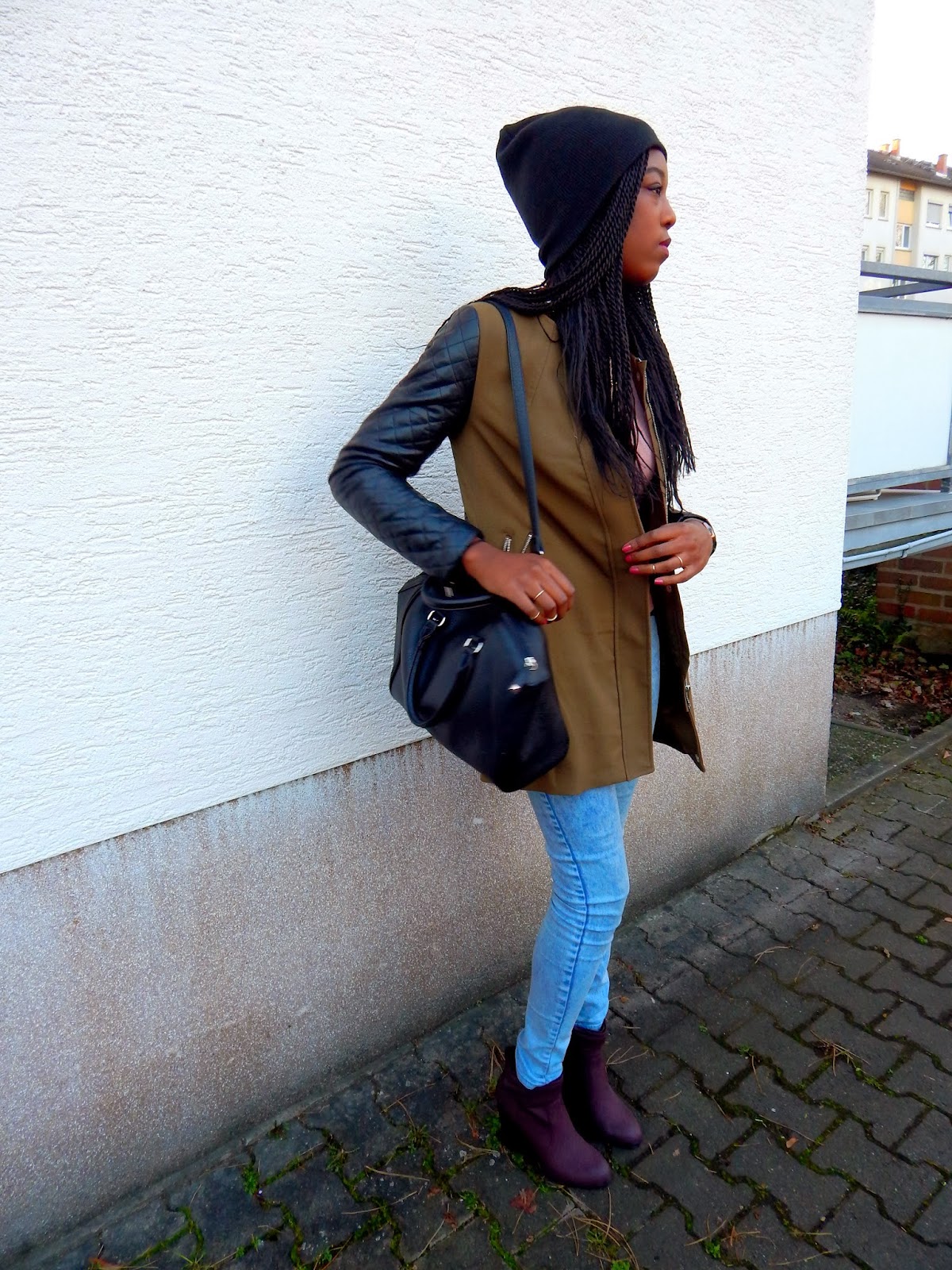 pullover, beanie, jeans: primark // ankle boots, coat, bag, rings: h&m // link nacklace: claires